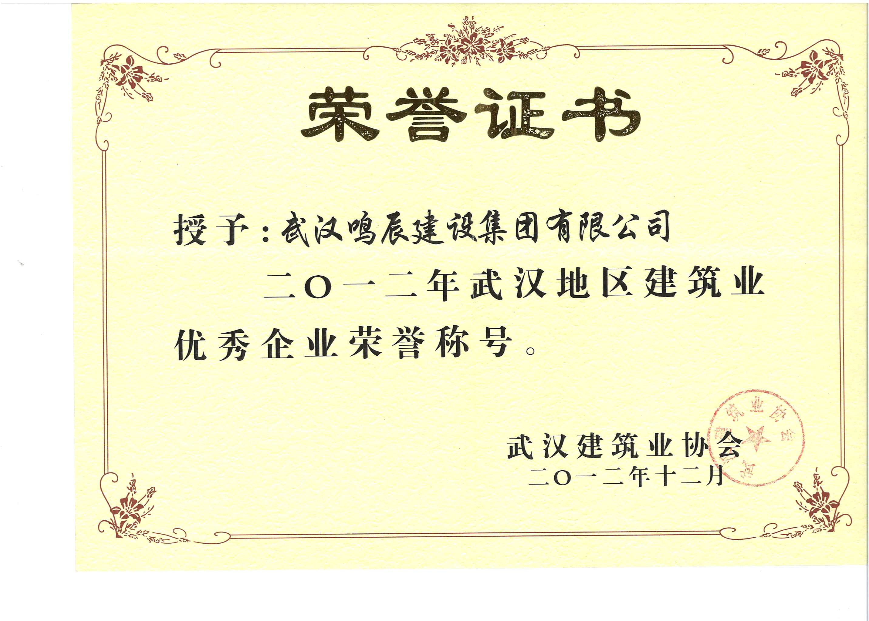 二〇一二年度武漢地區(qū)建筑業(yè)優(yōu)秀企業(yè)