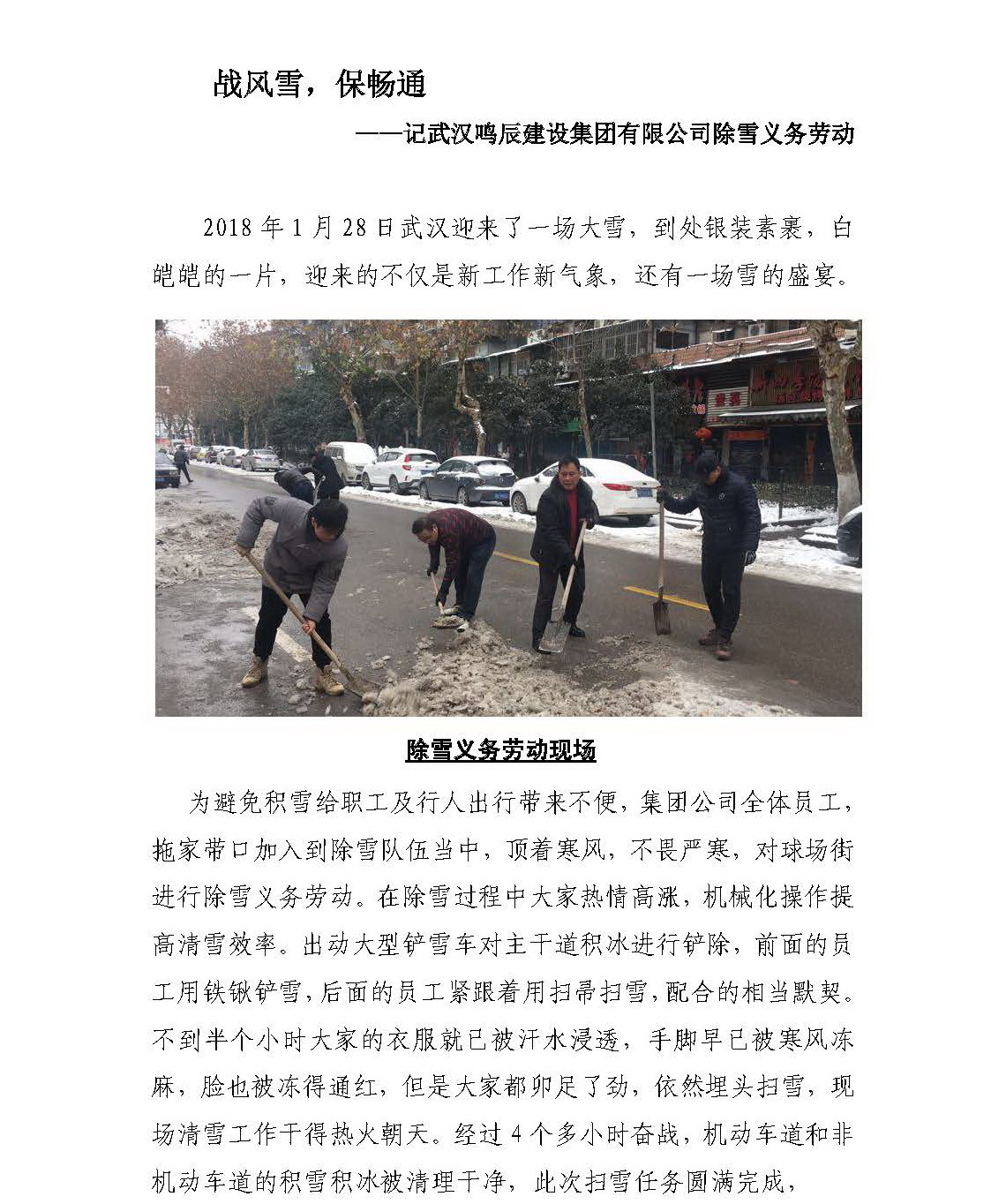 戰(zhàn)風雪,保暢通 ——記武漢鳴辰建設集團有限公司除雪義務勞動