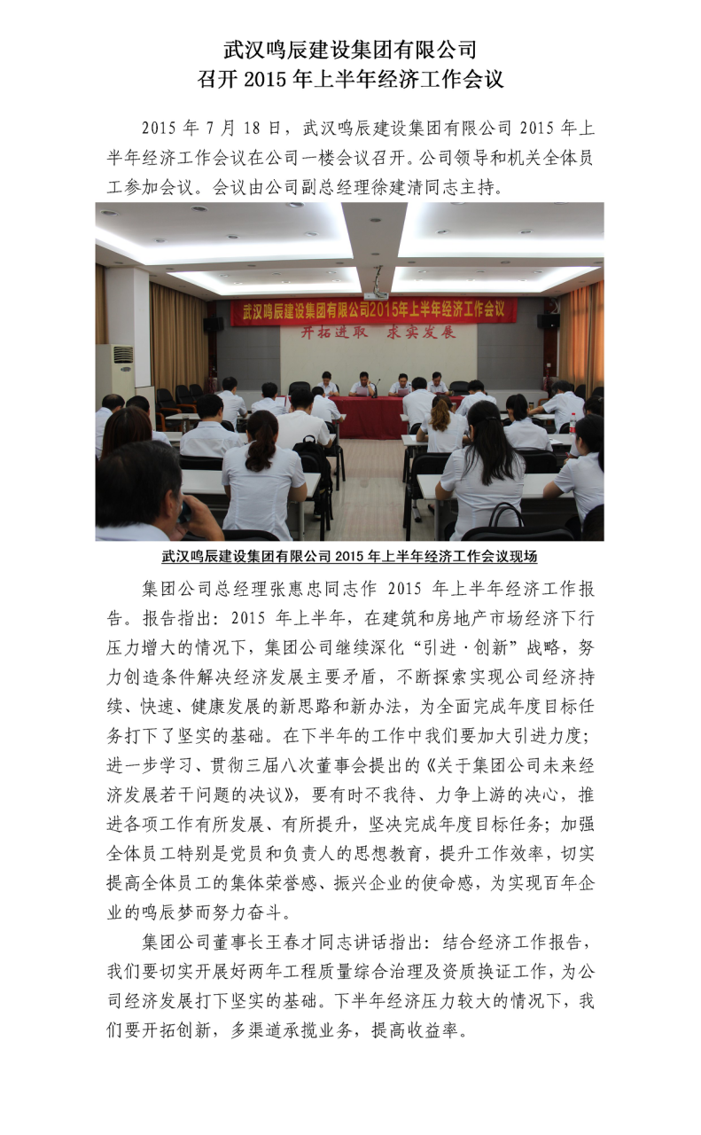 武漢鳴辰建設(shè)集團(tuán)有限公司召開(kāi)2015年上半年經(jīng)濟(jì)工作會(huì)議