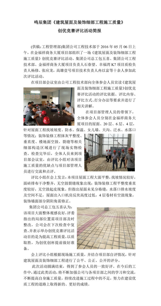 鳴辰集團《建筑屋面及裝飾細部工程施工質量》創(chuàng)優(yōu)競賽評比活動簡報
