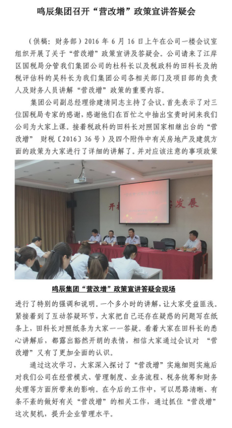 鳴辰集團(tuán)召開(kāi)“營(yíng)改增”政策宣講答疑會(huì)