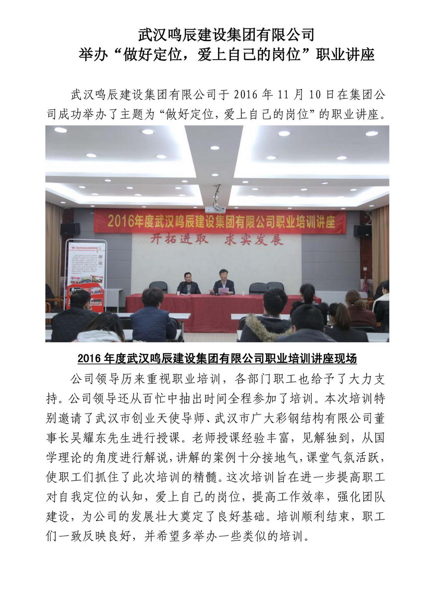 武漢鳴辰建設(shè)集團有限公司舉辦“做好定位,愛上自己的崗位”職業(yè)講座