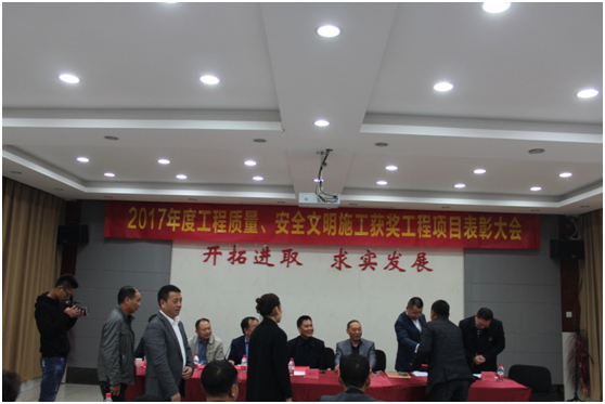 隨后,鳴辰集團(tuán)總經(jīng)理張惠忠宣布了《關(guān)于表彰2017年度獲獎(jiǎng)工程項(xiàng)目的決定》。決定對(duì)保利時(shí)代K18地塊A、B棟及地下室工程、高雄壹號(hào)工程、幸福灣二期、保利清能西海岸北區(qū)五期工程、祥運(yùn)鞋業(yè)生產(chǎn)車(chē)間工程等5個(gè)工程項(xiàng)目榮獲的工程質(zhì)量、安全文明施工方面的7個(gè)獎(jiǎng)項(xiàng)就行了獎(jiǎng)勵(lì)。市協(xié)會(huì)領(lǐng)導(dǎo)、中杰公司領(lǐng)導(dǎo)、勞動(dòng)街領(lǐng)導(dǎo)及鳴辰集團(tuán)公司領(lǐng)導(dǎo)為受表彰的項(xiàng)目進(jìn)行了頒獎(jiǎng)。