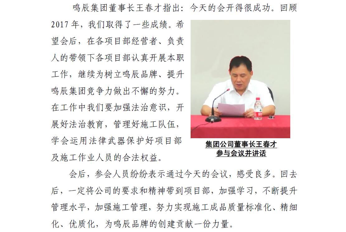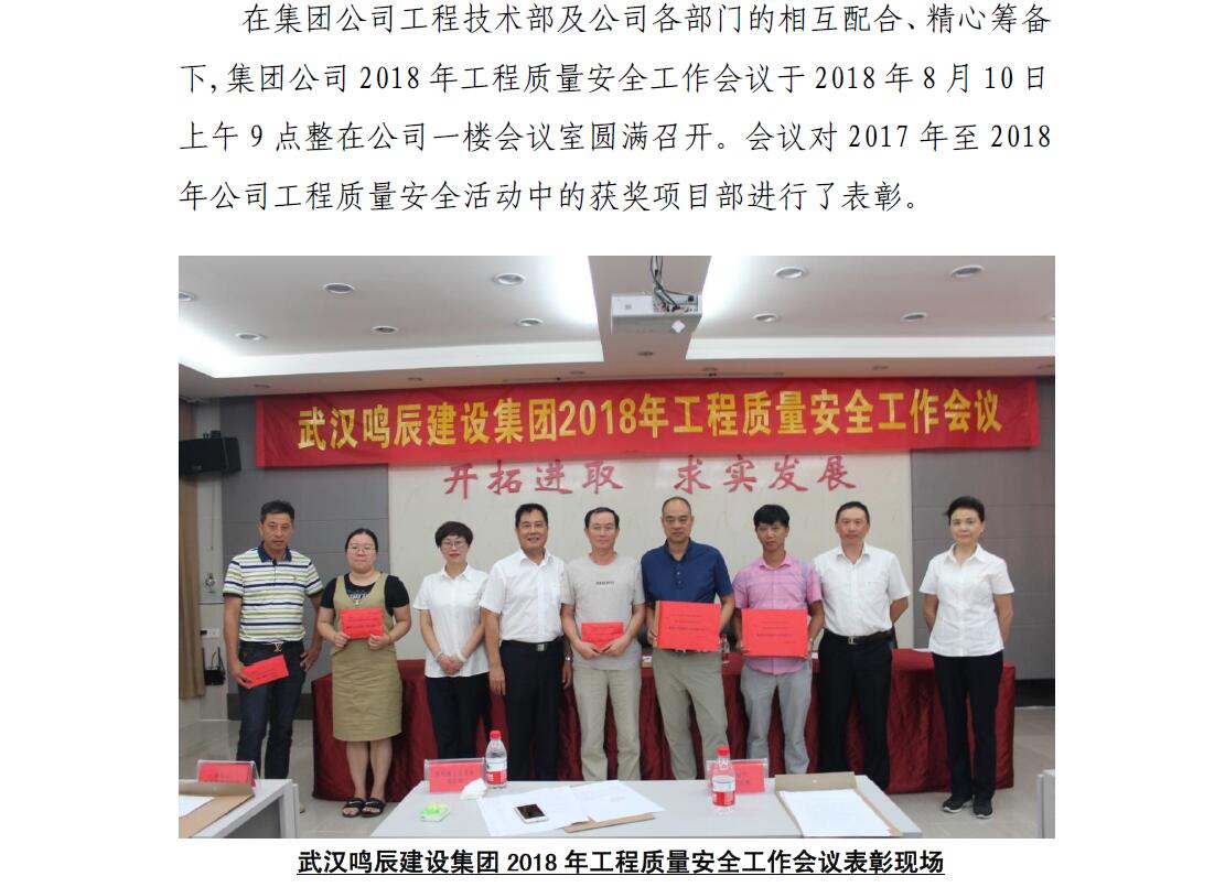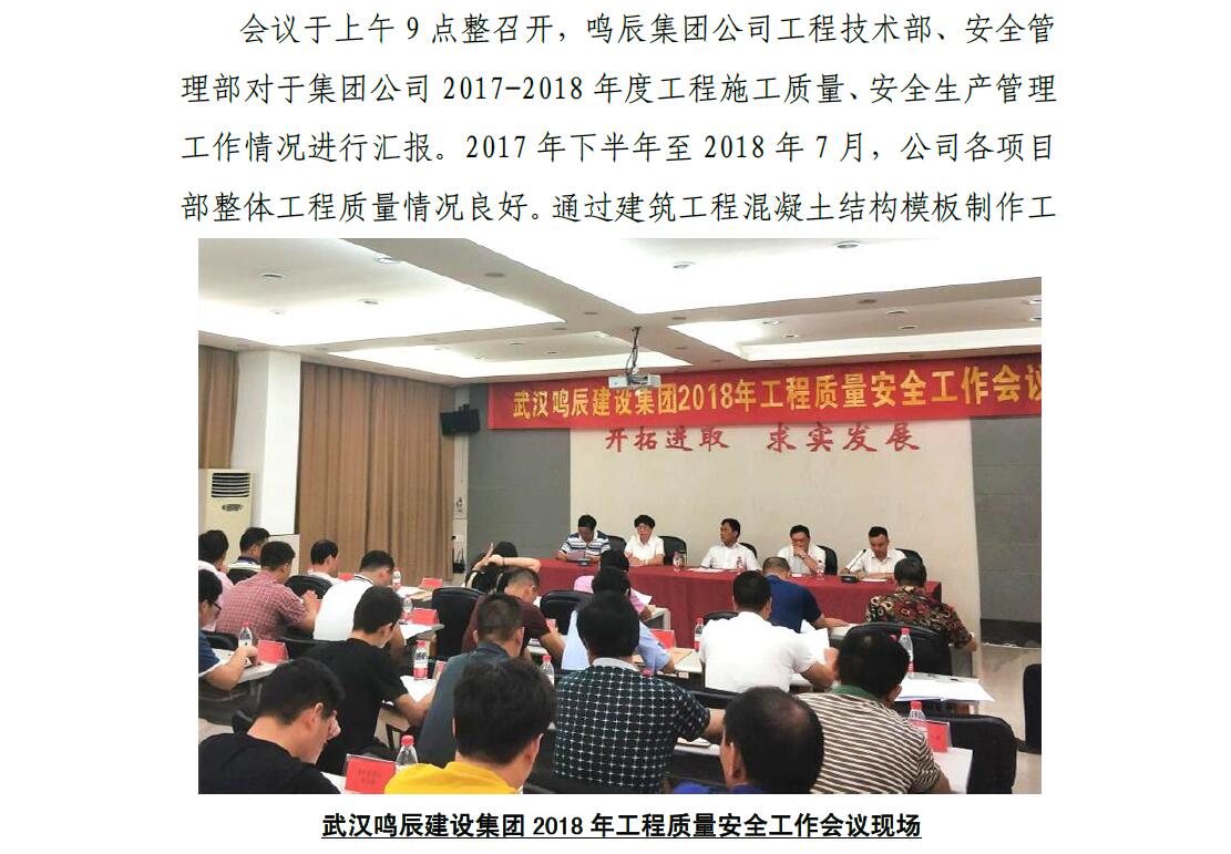 武漢鳴辰建設(shè)集團有限公司 召開2018年工程質(zhì)量安全工作會議