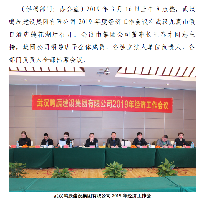 武漢鳴辰建設集團有限公司 召開2019年經(jīng)濟工作會議