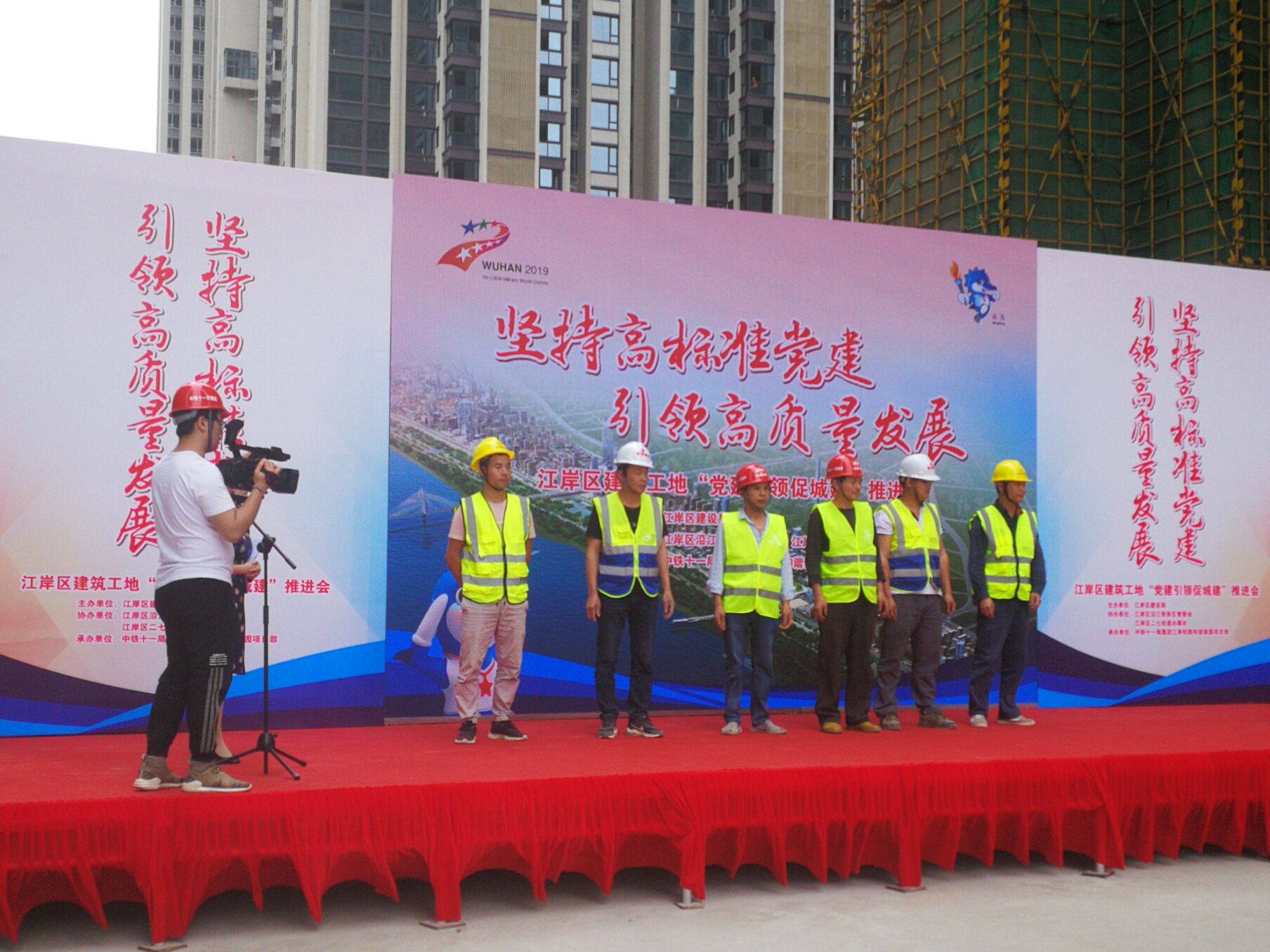 (供稿:安全管理部)2019年5月21日,江岸區(qū)建筑工地“黨建引領(lǐng)促城建”推進(jìn)會(huì)在漢口濱江國際商務(wù)區(qū)和諧家園項(xiàng)目部施工現(xiàn)場(chǎng)舉行。鳴辰集團(tuán)積極響應(yīng),挑選優(yōu)秀的技術(shù)工人參加現(xiàn)場(chǎng)技能比武活動(dòng)。本次推進(jìn)會(huì)由江岸區(qū)建設(shè)局、江岸區(qū)沿江商務(wù)區(qū)管委會(huì)、二七街道共同主辦。