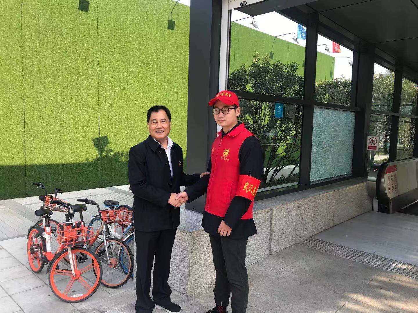 2019年10月18日,上午9點整集團(tuán)公司黨委書記王春才同志、黨委副書記凃敏同志前往地鐵三陽路站G出口看望志愿者,并向志愿者授旗。王春才同志親切詢問志愿者志愿服務(wù)情況,勉勵志愿者開展好志愿者服務(wù),展現(xiàn)鳴辰人“開拓進(jìn)取,求實發(fā)展”的鳴辰精神,為軍運會增光添彩。