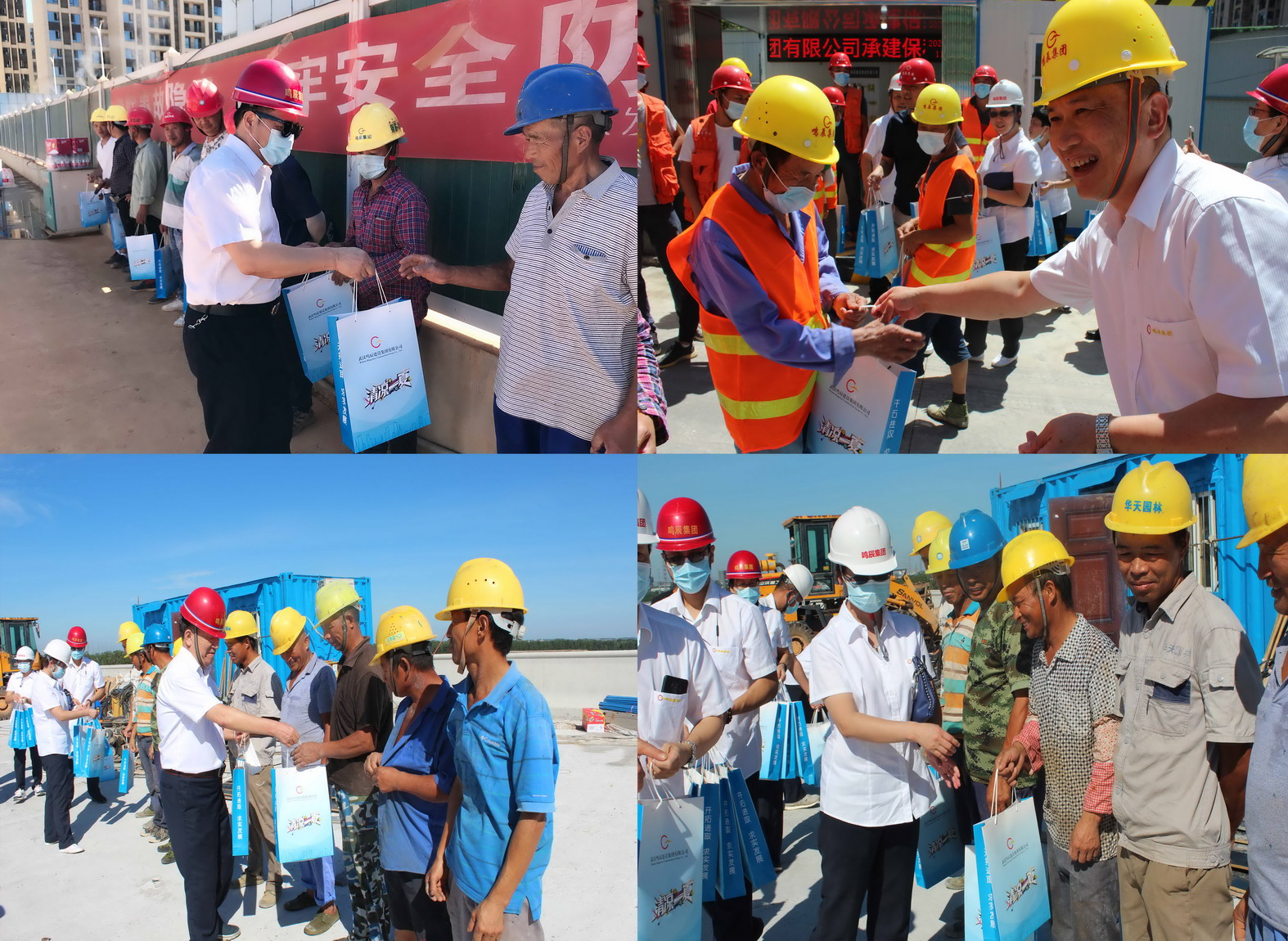 在項(xiàng)目現(xiàn)場(chǎng),項(xiàng)目負(fù)責(zé)人向公司領(lǐng)導(dǎo)班子匯報(bào)了防暑降溫工作開(kāi)展情況:為積極應(yīng)對(duì)夏季高溫,項(xiàng)目部嚴(yán)格落實(shí)國(guó)家法律、法規(guī)以及省、市、公司關(guān)于高溫建筑施工防暑降溫規(guī)定,采取了錯(cuò)峰施工、設(shè)置茶水間、準(zhǔn)備防暑降溫藥品等措施,目前項(xiàng)目施工質(zhì)量情況良好,進(jìn)度正常。保利香頌項(xiàng)目負(fù)責(zé)人介紹到,為了積極應(yīng)對(duì)高溫意外的發(fā)生,項(xiàng)目部準(zhǔn)備了兩臺(tái)車輛,如發(fā)生意外,我們會(huì)在第一時(shí)間將病人送至附近的兩所醫(yī)院,兩所醫(yī)院距離項(xiàng)目現(xiàn)場(chǎng)距離均在15分鐘以內(nèi)。在發(fā)放送清涼物資時(shí),項(xiàng)目施工人員紛紛表示:感謝公司領(lǐng)導(dǎo)的關(guān)懷、關(guān)心,我們一定堅(jiān)守好自己的崗位,保質(zhì)保量,做好本職工作,順利完成公司交給我們的任務(wù),以高質(zhì)量的工程項(xiàng)目回報(bào)公司領(lǐng)導(dǎo)的關(guān)懷、關(guān)心。