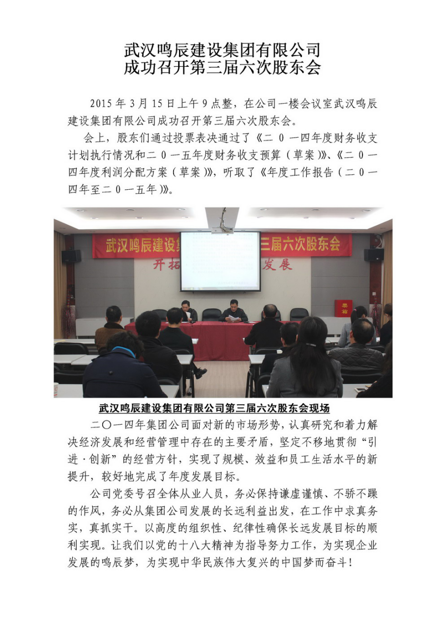 武漢鳴辰建設(shè)集團成功召開第三屆六次股東會