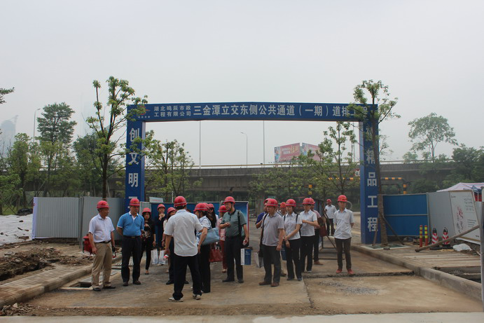 調(diào)研小組一行早上9點(diǎn)在我公司一樓會議室觀看了我公司宣傳片,對我公司做了簡單了解。隨后,公司領(lǐng)導(dǎo)陪同政協(xié)委員到公司承接的幸福村K5項(xiàng)目及我公司市政公司承接的三金潭項(xiàng)目工地現(xiàn)場檢查指導(dǎo)工作。